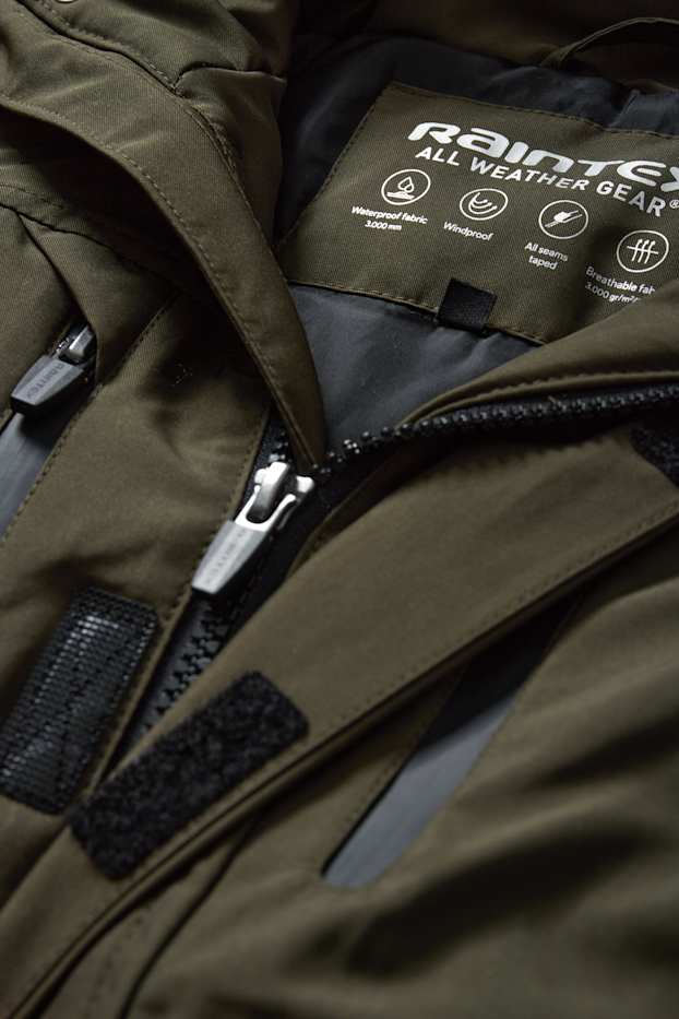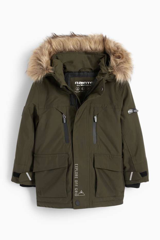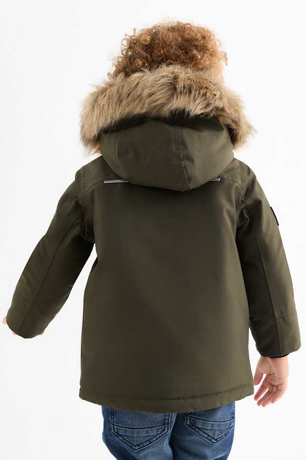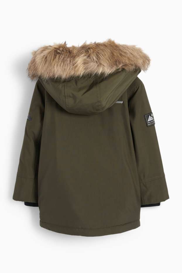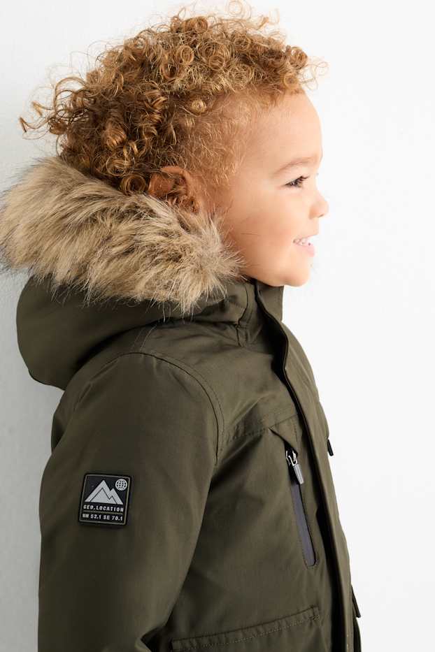 - Veste à capuche, dotée d'une garniture d'imitation fourrure - imperméable