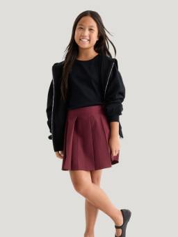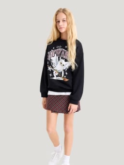 Eine süsse Jupe, kombiniert mit einem coolen Hoodie, ist für jede Hexe eine gute Wahl. Hermine oder Ginny tragen meist einfarbige Basic-Oberteile mit einer Faltenjupe. Kleine Zauberer können mit einem Sweatshirt mit passendem Print den sprechenden Hut überzeugen. Harry und Ron tragen ausserhalb der Schule oft Pullover mit Zopfmuster. Ein magisches Outfit lässt sich meist ganz einfach aus dem eigenen Kleiderschrank zusammenstellen.