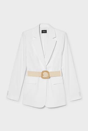Żakiet z poduszkami na ramionach i paskiem